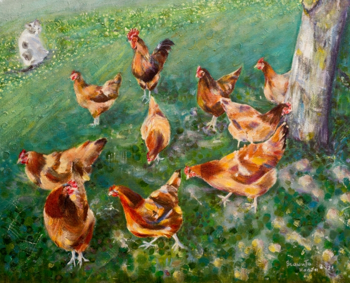 które przedstawia najchętniej w technice akrylowej. Bierze udział w warsztatach, plenerach malarskich, aukcjach charytatywnych, wystawach poplenerowych i