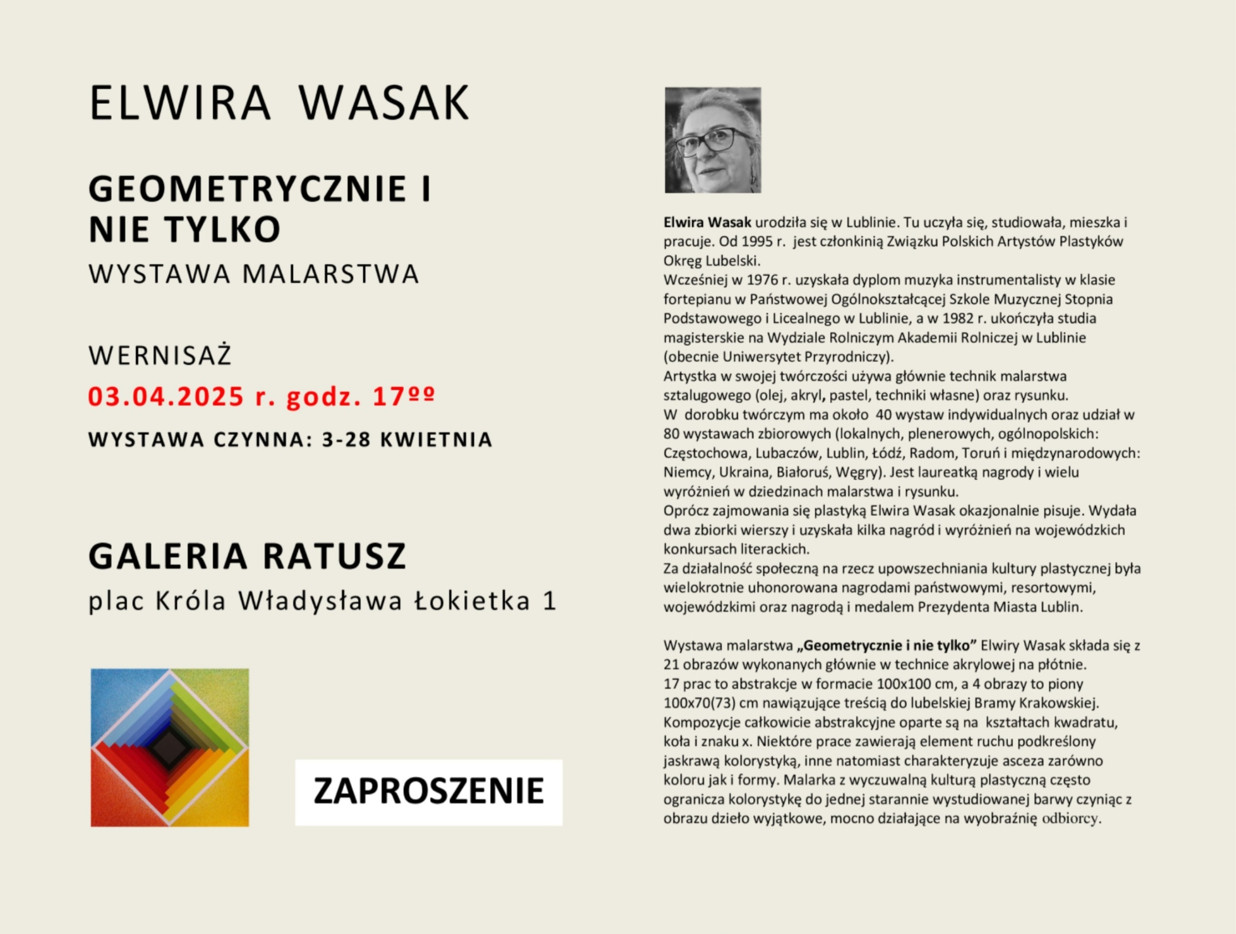 Wernisaż: 3 kwietnia 2025 r. godz. 1700.